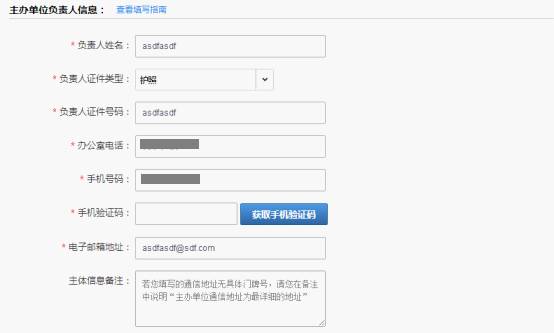 1.负责人姓名:主办负责人请填写法人信息,网站负责人拍照