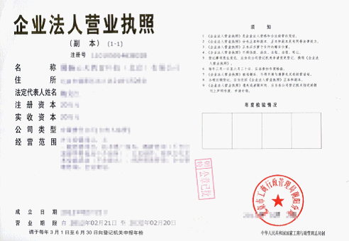 工商营业执照图示: