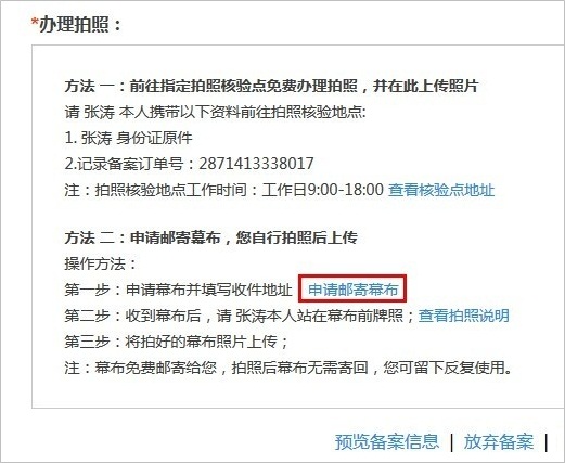 (2)需要您携带备案订单号及个人身份证前往办理拍照