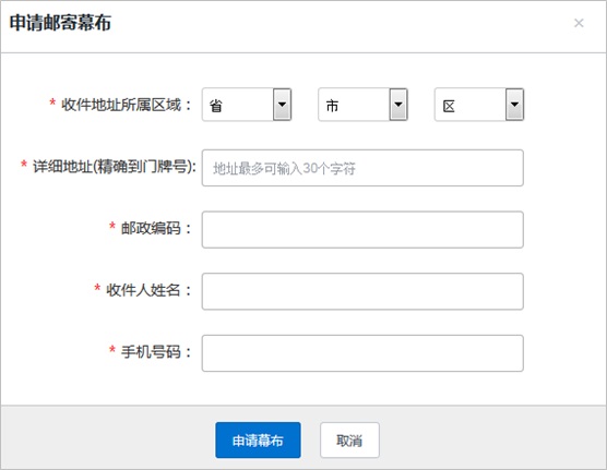 1、一个账号只能免费申请一次邮寄幕布,申请过后系统将不再提供申请入口